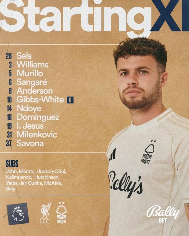 北京时间11月22日23:00,英超第12轮,利物浦主场对阵诺丁汉森林。赛前首发公布。
