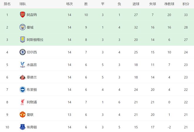 随着阿森纳2-0,利物浦1-1,切尔西1-3爆冷,英超最新积分榜出炉